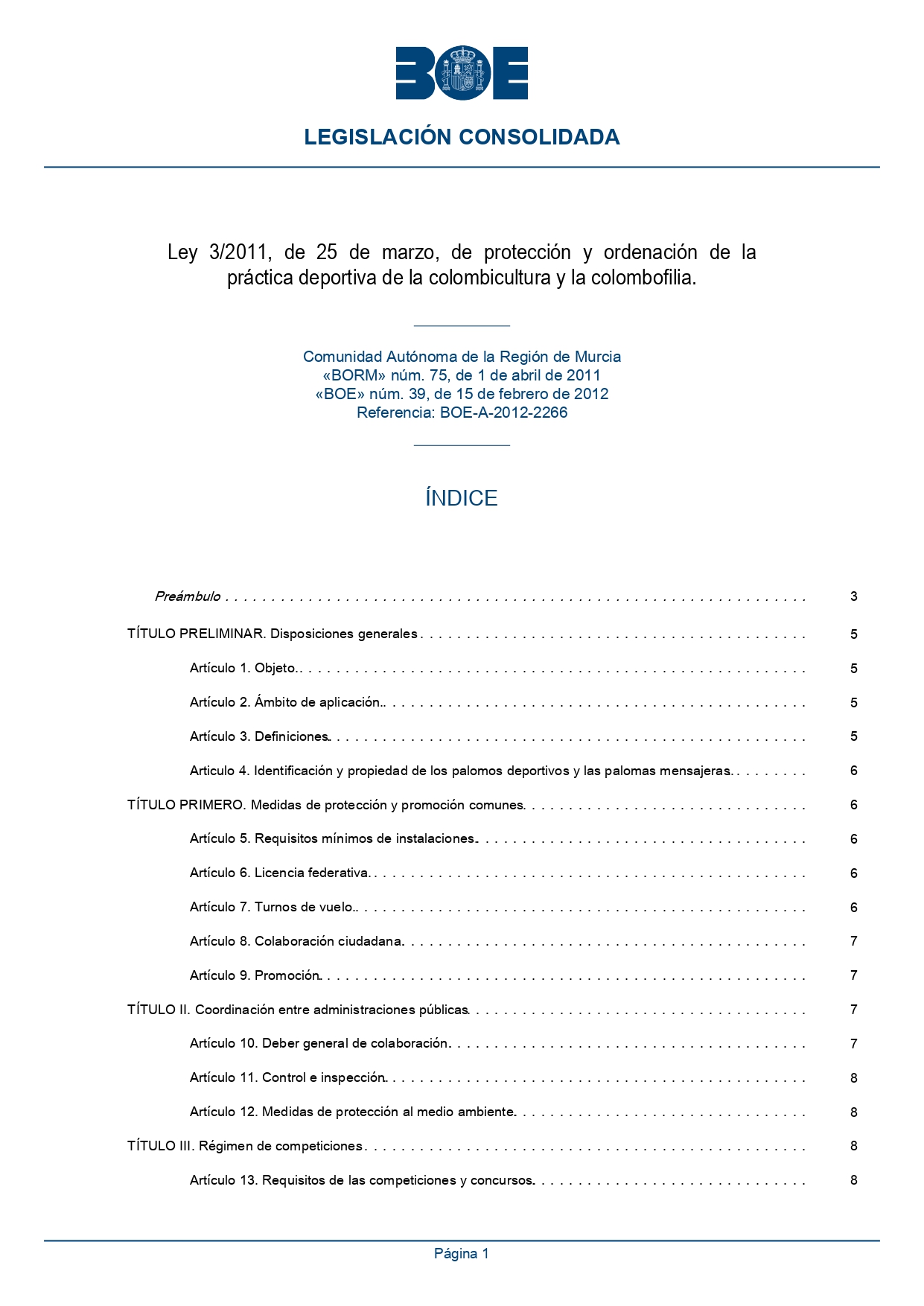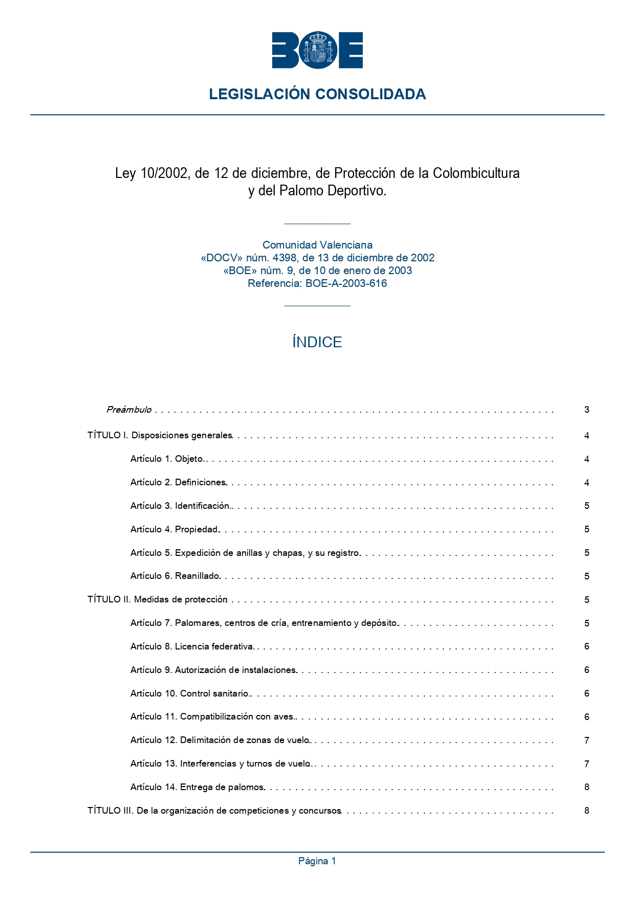 LEY PROTECCIÓN DE LA COLUMBICULTURA Y DEL PALOMO DEPORTIVO Ley 10/2002 aprobada el 13 de diciembre de 2002 en la Comunidad Valenciana